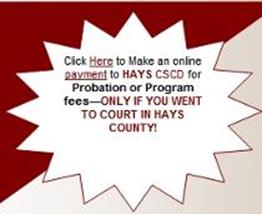 Probation Payments: Hays County CSCD 712 Stagecoach Drive, Suite 1326 San Marcos, Texas 78666